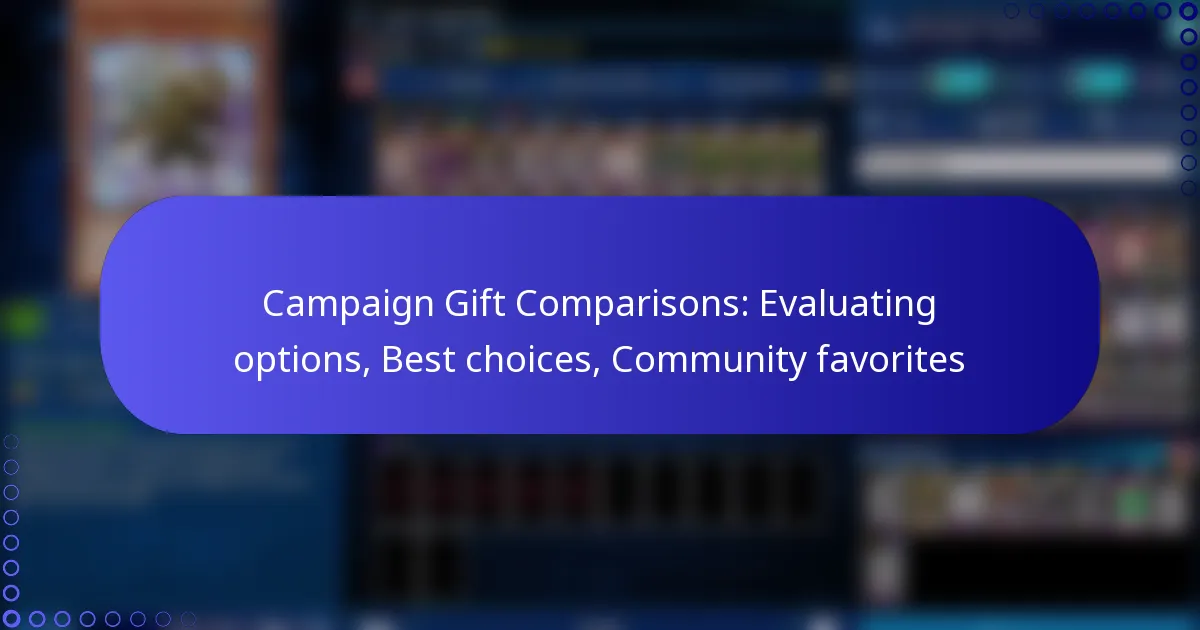 When comparing campaign gifts, consider criteria such as cost, quality, usability, and popularity within the community. Each of these factors plays a crucial role in determining the overall effectiveness of the gift in engaging your audience.