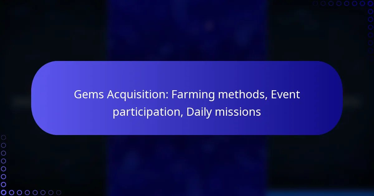 Acquiring gems in your game can be optimized through effective farming methods, event participation, and daily missions. By identifying high-yield locations and utilizing specific characters, players can enhance their gem collection. Additionally, engaging in limited-time events offers unique rewards, while daily missions provide consistent opportunities to earn gems for in-game purchases.