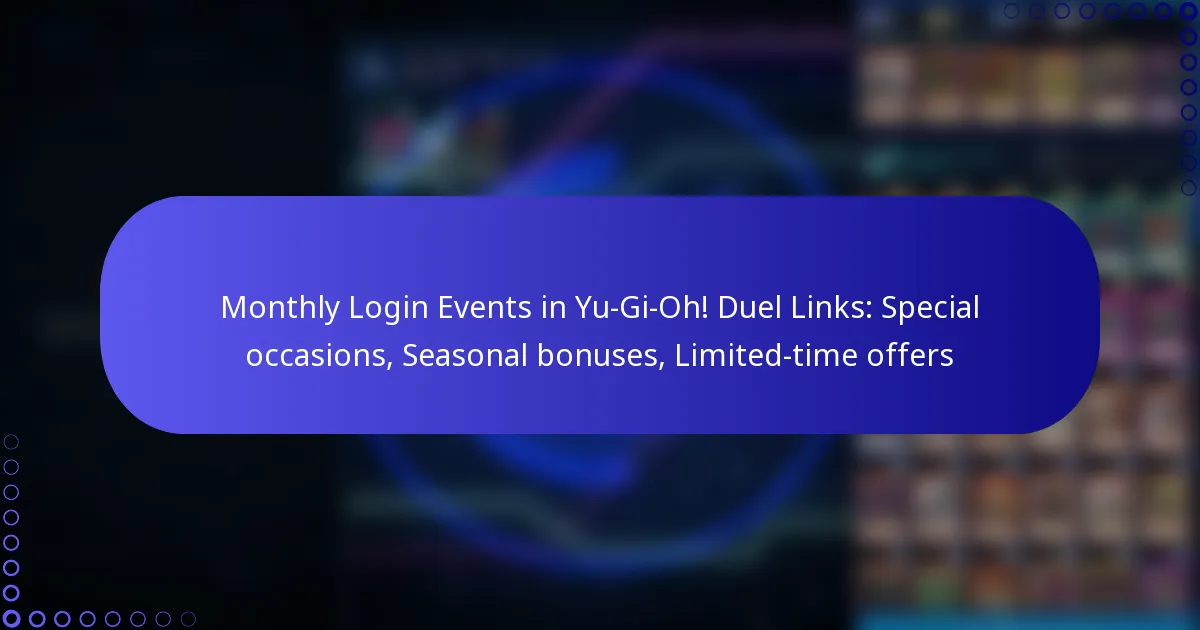 Monthly login events in Yu-Gi-Oh! Duel Links are significantly influenced by various special occasions, including holidays, game anniversaries, and community collaborations. These events often feature enhanced rewards and unique bonuses that encourage player engagement and participation.